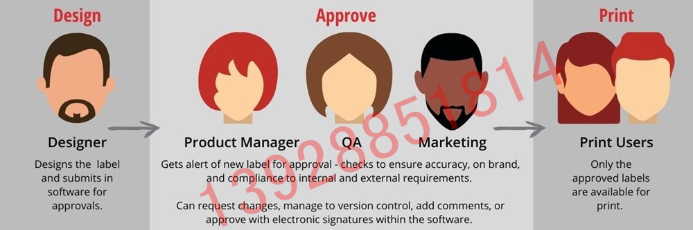 批準: 選擇準備好生產(chǎn)的標簽,拒絕那些沒有準備好的標簽。使用 LABEL ARCHIVE 電子郵件通知功能消除錯誤。創(chuàng)建并提交標簽后,會收到即時警報。