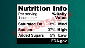 擬議的標(biāo)簽將把產(chǎn)品的飽和脂肪、鈉和添加糖指定為“低”、“中”或“高”。制造商可以自愿在包裝正面標(biāo)簽中申報(bào)卡路里。