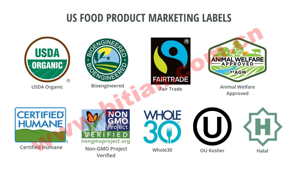 美國(guó)監(jiān)管的食品營(yíng)銷標(biāo)簽包括: